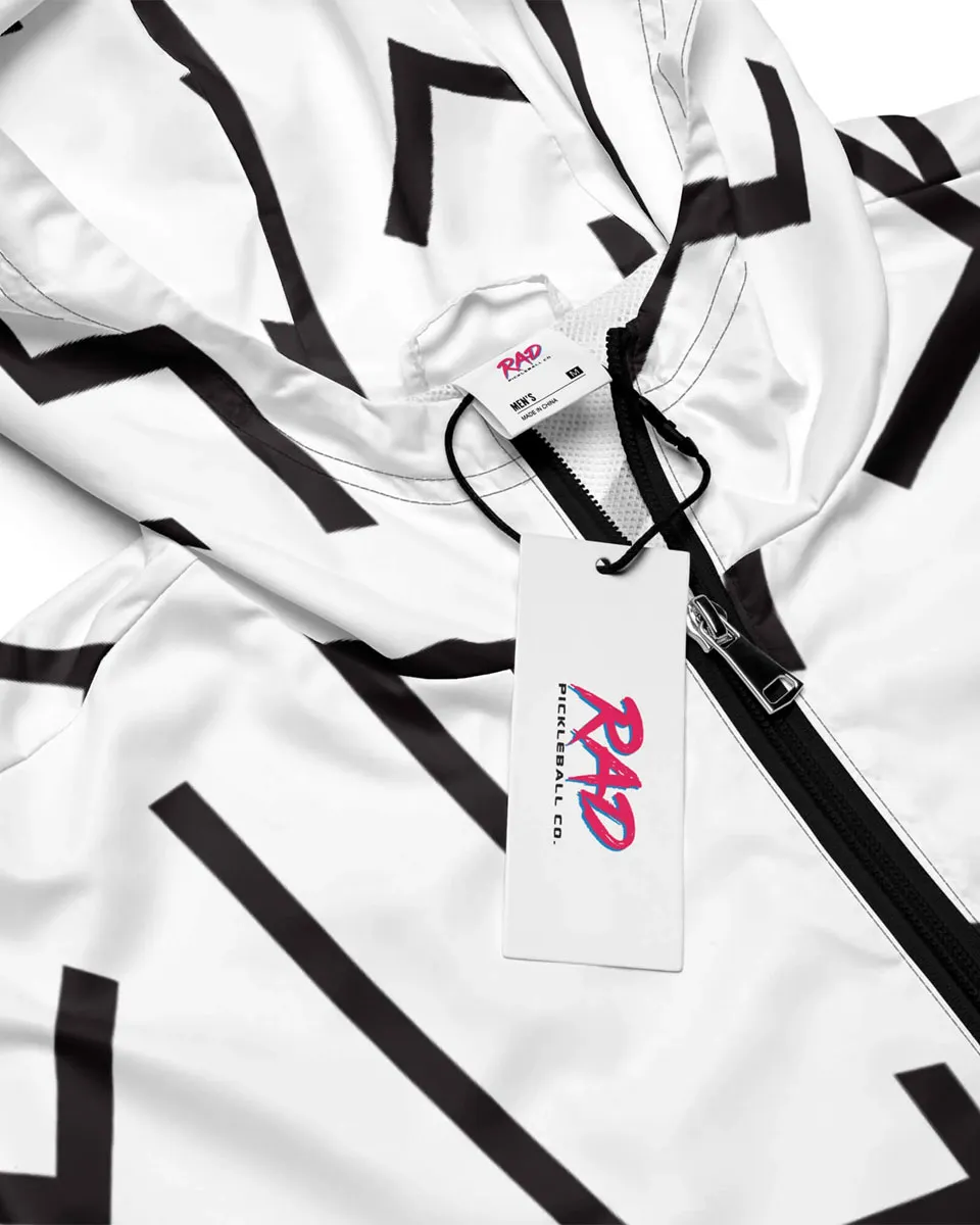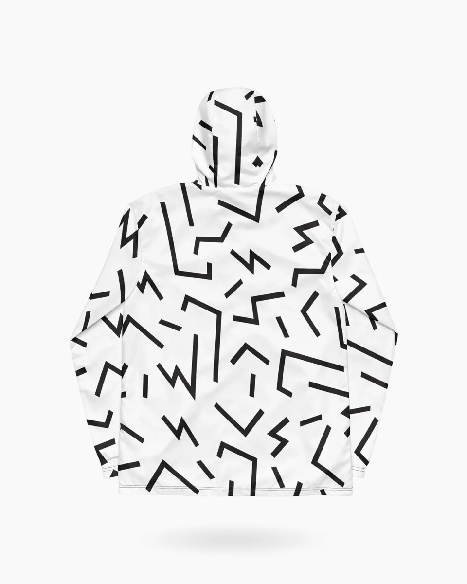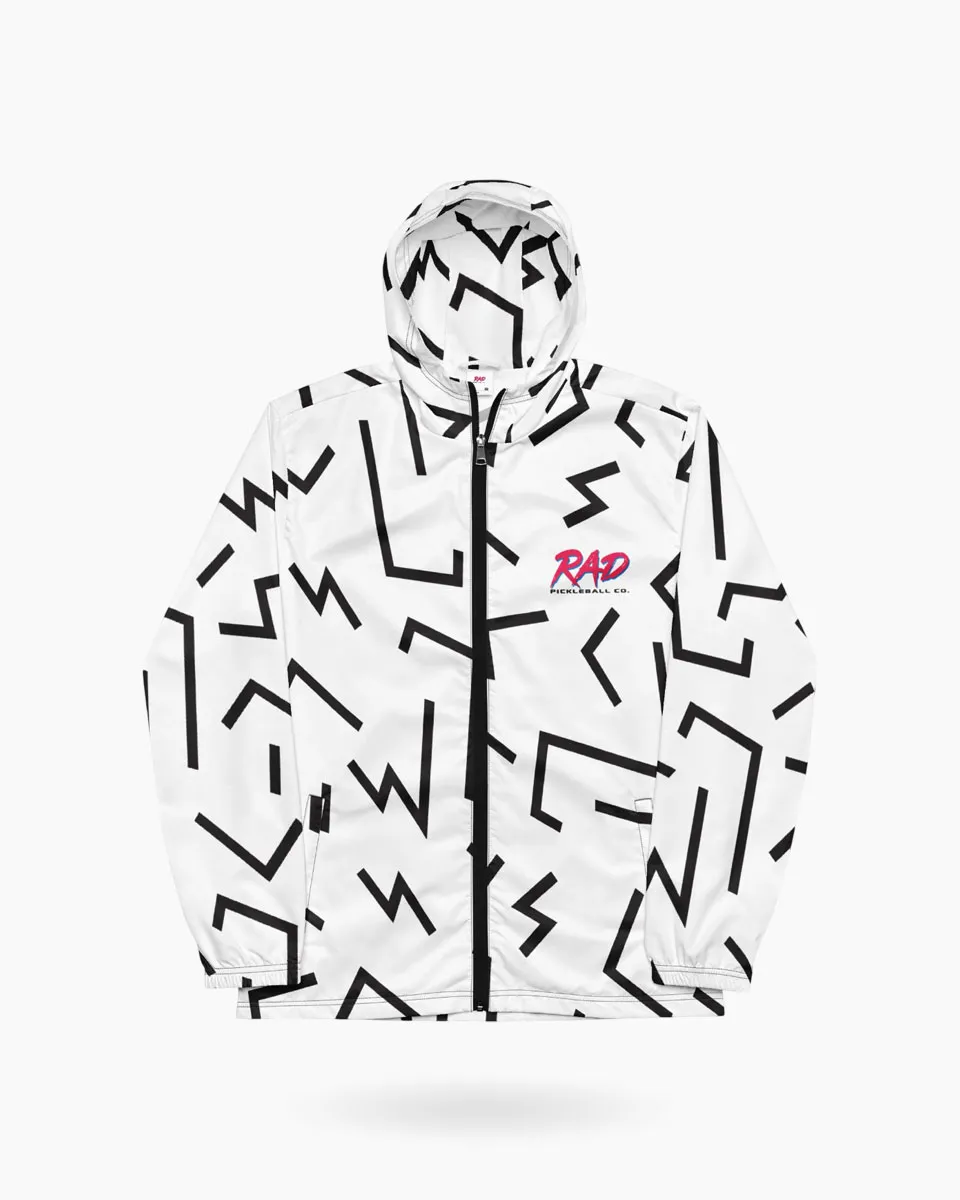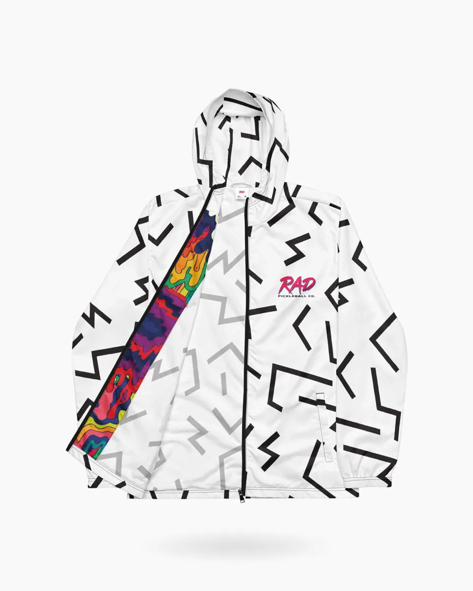The intersection of retro-geometric precision and modern athletic utility. The Vector Windbreaker is an ultralight technical shell engineered for the player who demands zero-drag performance. Weighing only 75 g/m², this layer features an all-over “bolt” motif and a hidden psychedelic interior placket, offering a sophisticated aesthetic that transitions from the court to the city with effortless ease.